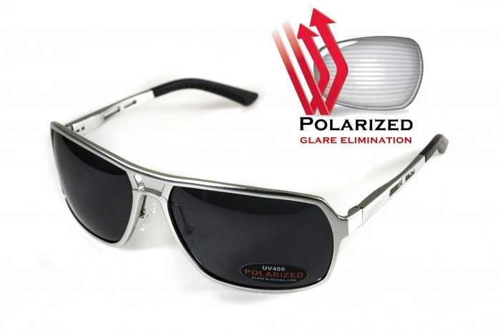 Окуляри поляризаційні BluWater Alumination-4 Silver Polarized (gray) чорні в сріблястій оправі